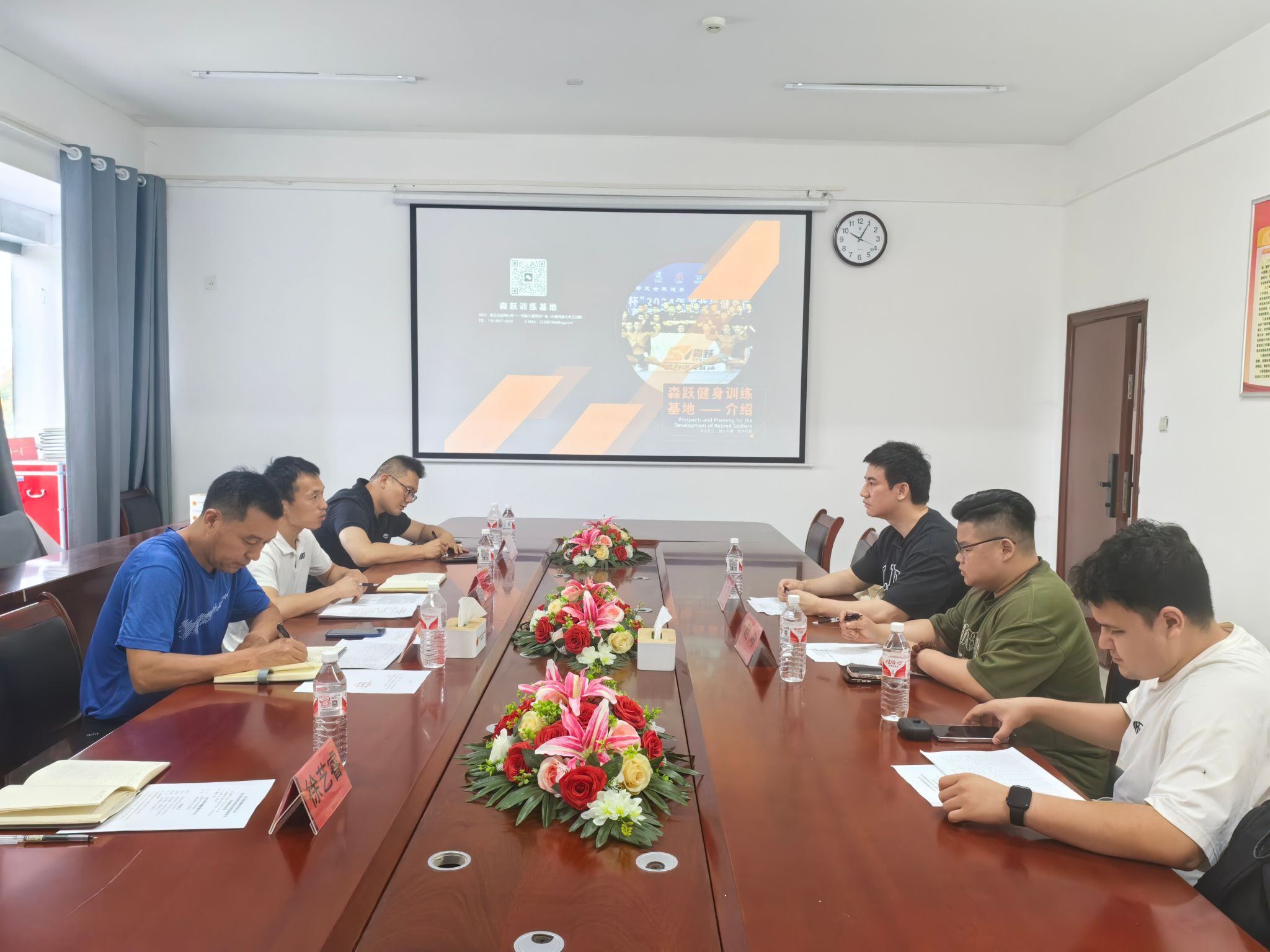 武汉森跃健身训练基地院长许力随后介绍了公司的基本情况,包括企业成立时间、主营业务、合作单位及人才需求方向。他特别提到,森跃公司高度重视专业技能培训,可为学生提供健身教练、健康管理师等岗位的定向培养。此外,许力还分享了公司在退伍军人就业支持及专业战队组建方面的经验,表示愿与学院共同探索更多合作可能。