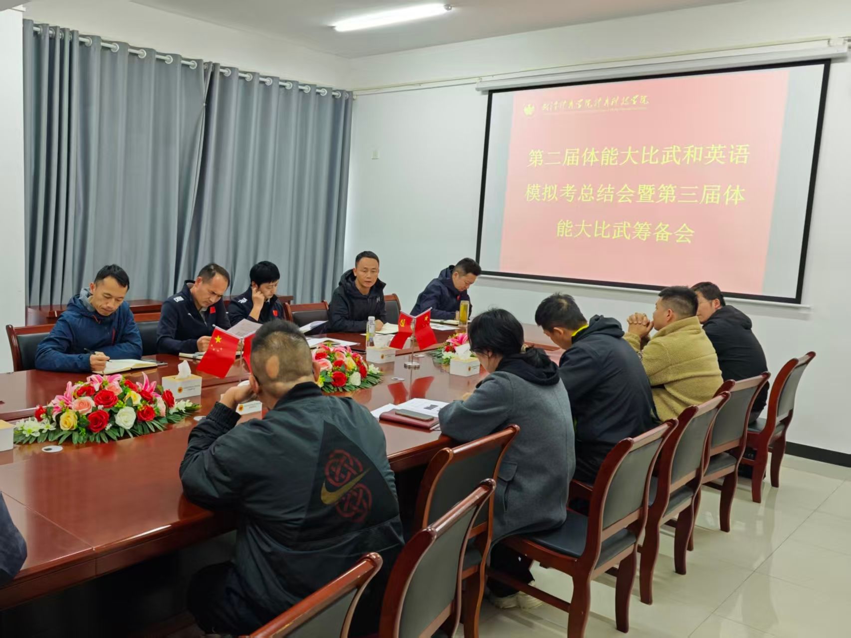本次总结会既是全面贯彻党的教育方针,紧密围绕“竞赛规程优化、备考体系完善、育人模式创新”三大主题,又是积极筹备第三届体能大比武动员会和冬训誓师大会,实施素质教育在高等教育教学中的重要性,强化体能训练支撑专业技能水平的协同发展,重视引导学生把知识内化成自身素质,力求形成“以模拟考为杠杆,撬动学风建设;以全科备考为纽带,贯通人才培养”的特色路径,全面提高学生的素质能力。