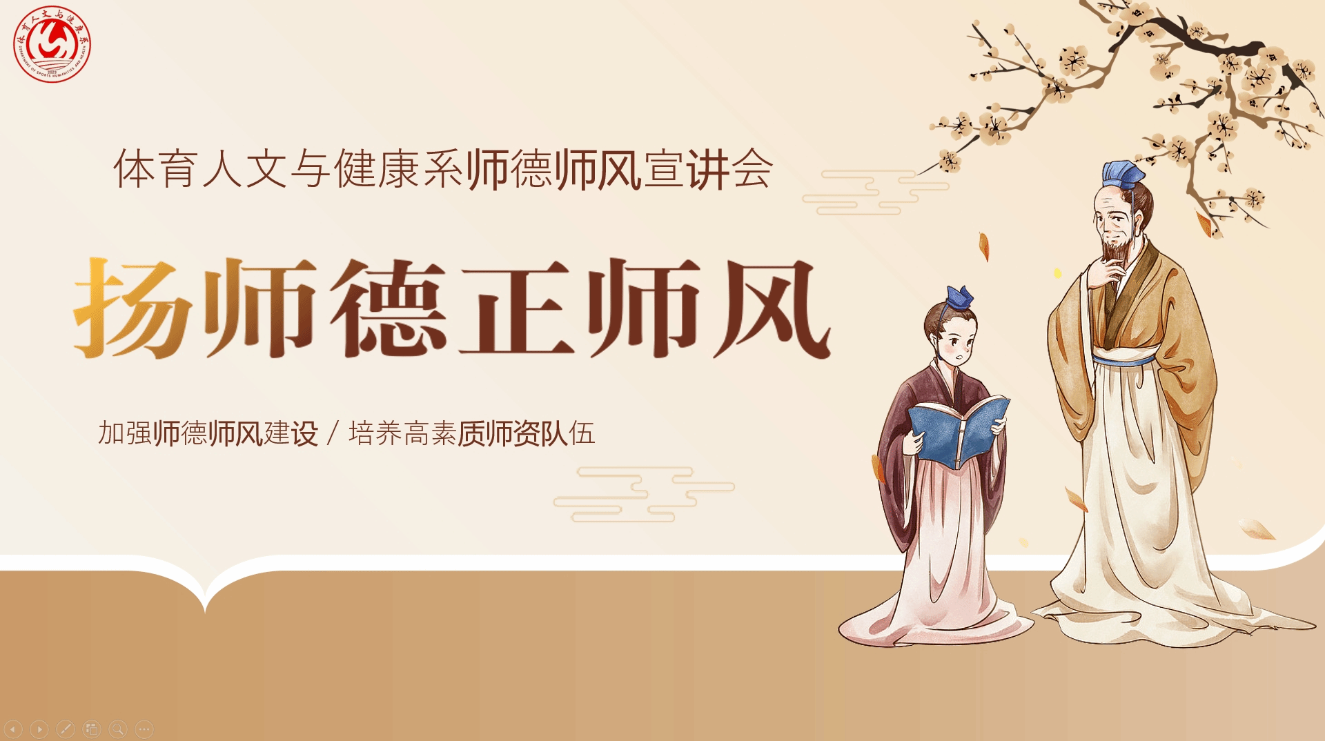 新闻网讯(通讯员张苒 )为进一步明确师德要求,提高师德修养,树立师德形象,以师德师风带动校风学风,促进教学质量再上新台阶,3月13日下午两点半,体育人文与健康系在行政楼二楼会议室召开师德师风宣讲会。会议由党总支书记、系主任郭远兵主持。党总支副书记胡劲生主讲,全系教职员工参加。