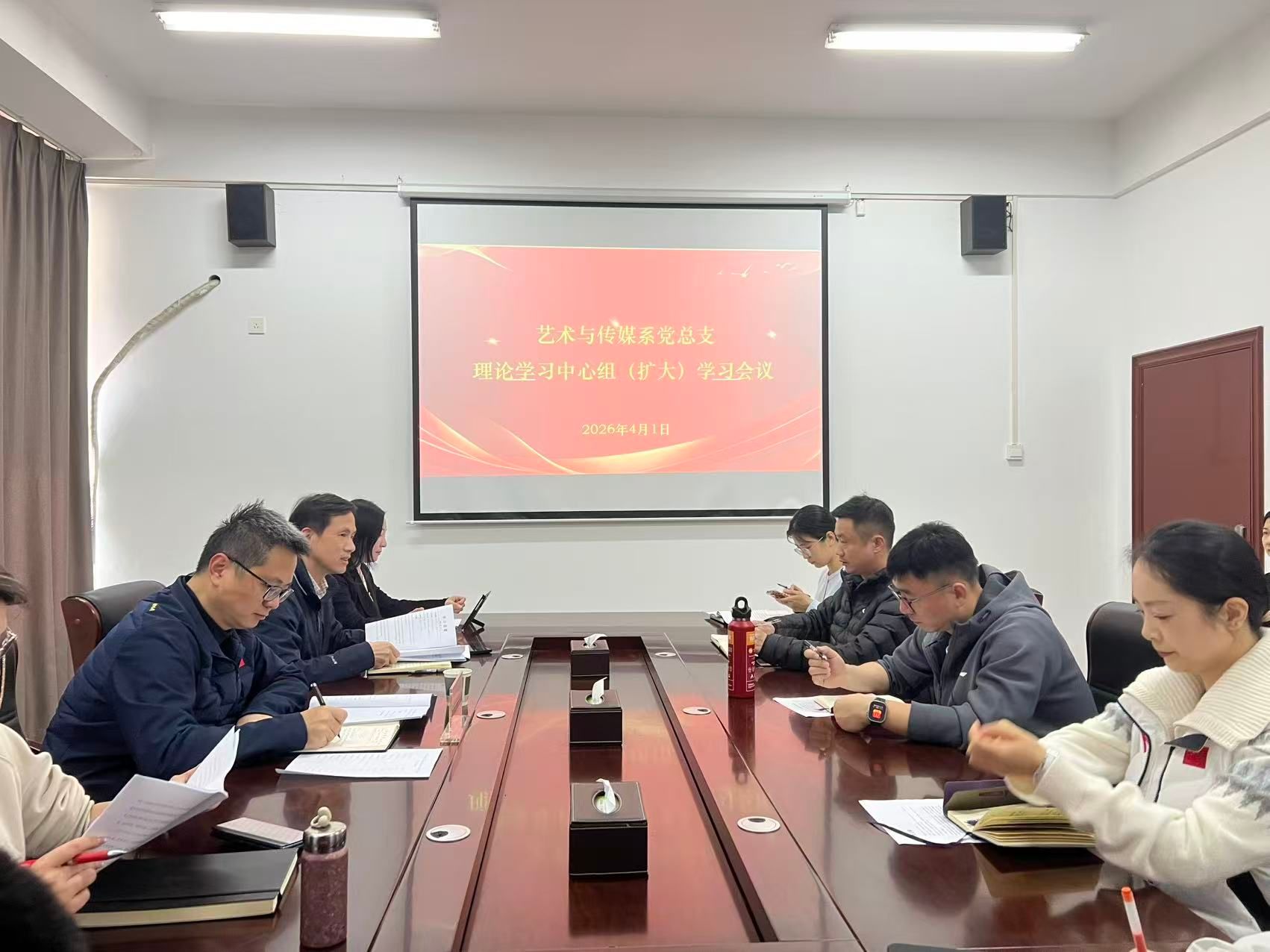 座谈会前,姜劲晖列席参加了艺术与传媒系党总支理论学习中心组(扩大)学习会并作了讲话。