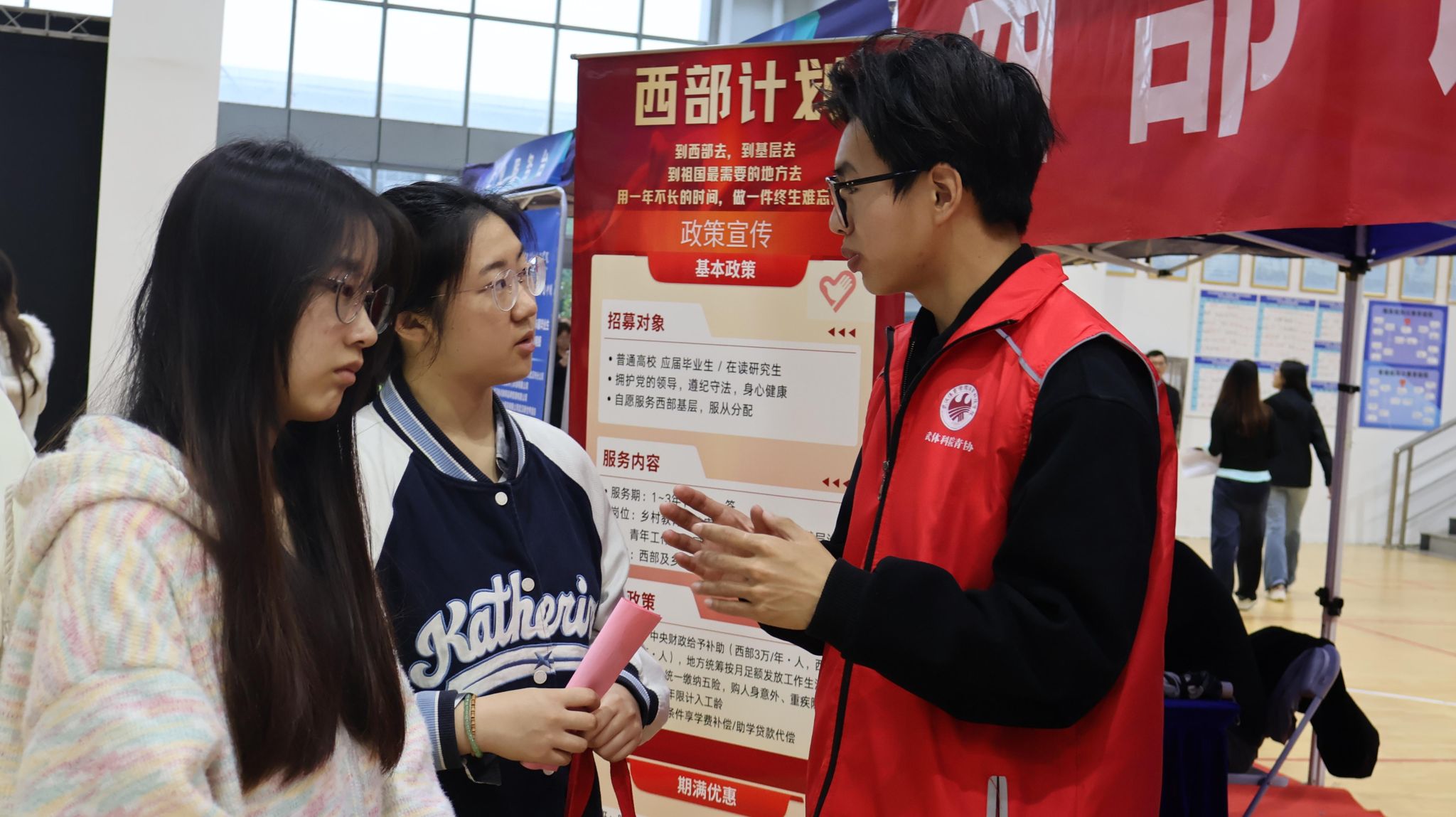 现场特设西部计划、征兵入伍、出国留学三大政策咨询区,同步开设政策解读、简历指导、直播带岗等一站式服务,线上线下联动服务毕业生。