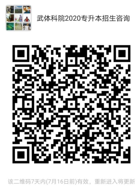 另,请通过资格审核考生使用微信扫描下方二维码加入“武体科院2020专升本招生咨询”群,以便通知考试相关事宜。