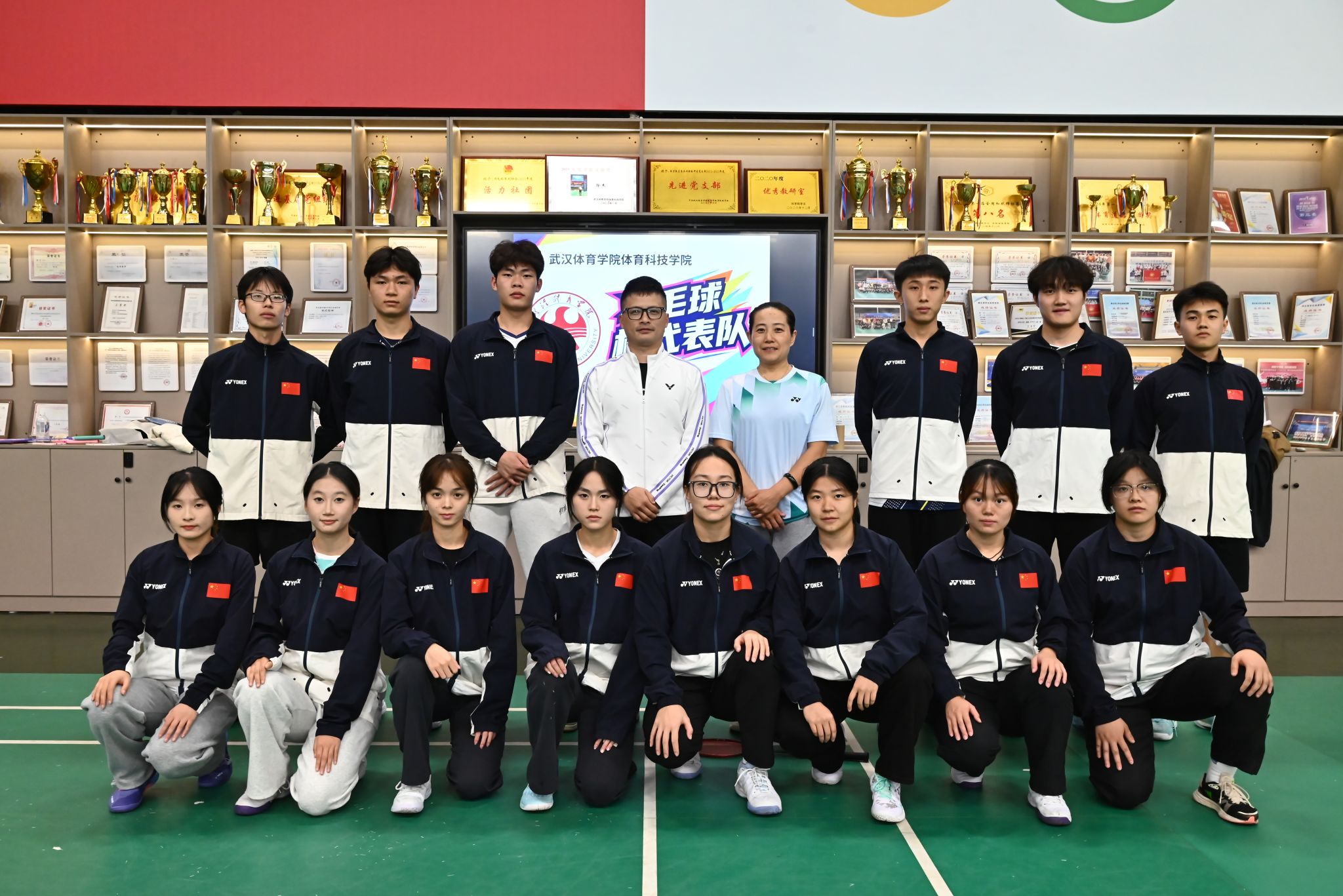 武汉体育学院体育科技学院羽毛球代表队成立于2024年,现任主教练徐杰,现有正式队员编制12名,机动队员编制4名。全队秉持团结拼搏、敢打敢拼的精神,深耕训练、作风顽强。2019年度斩获湖北省大学生羽毛球锦标赛男团冠军、女团季军;2023、2024年度在湖北省大学生羽毛球锦标赛中获得男团亚军、女团亚军的优异成绩,长年跻身湖北赛区体教组与众多体育类高校传统强队同场竞技。院羽毛球代表队全体始终将“夺冠军,赢强队,创佳绩,树品牌”作为训练竞赛工作的目标,不断创造新的突破。
