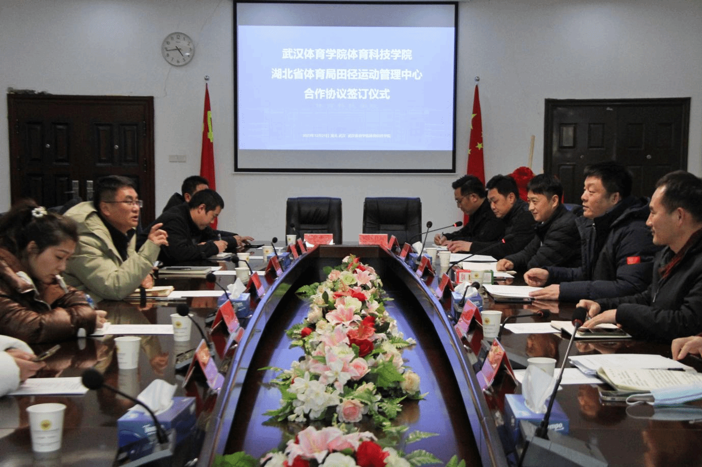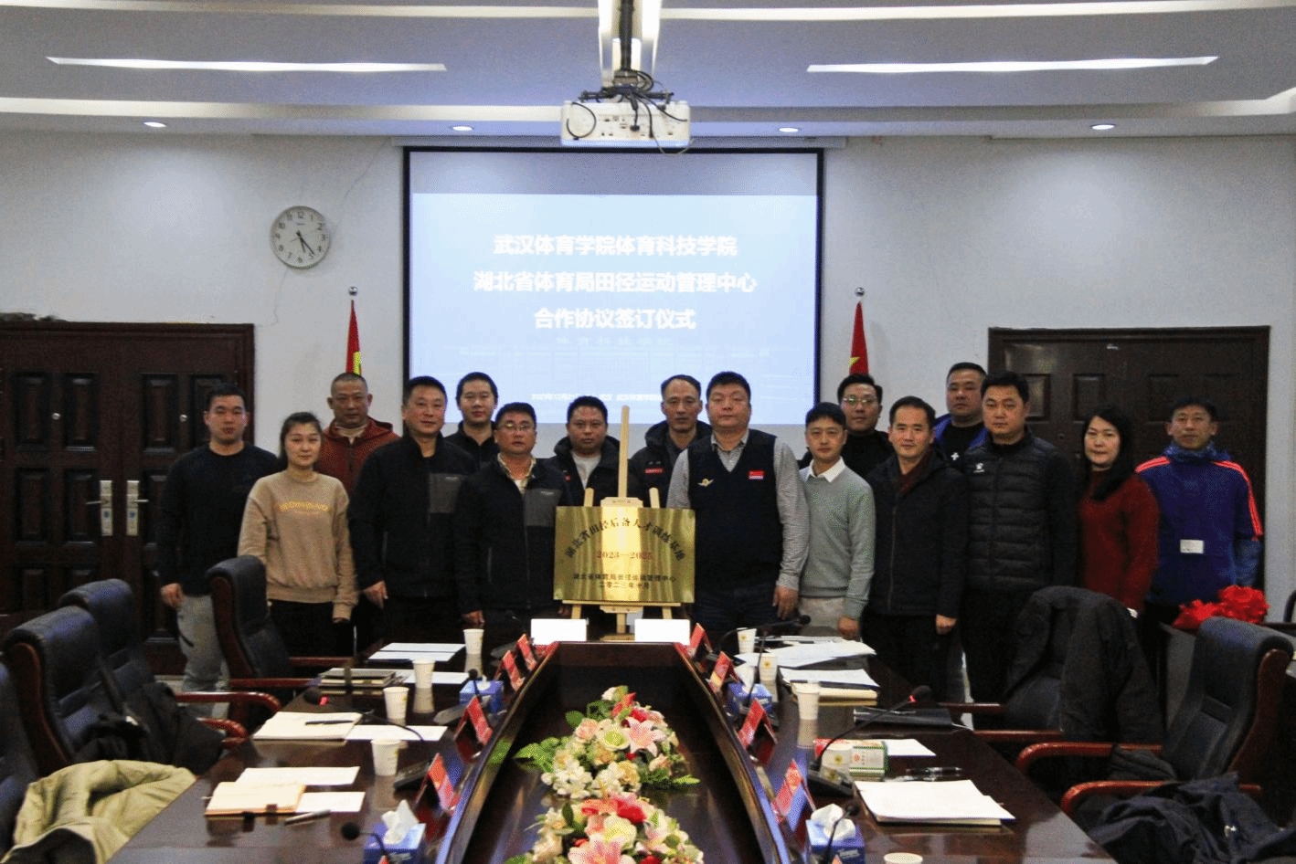 新闻网讯(通讯员张震)12月21日下午,学院与省体育局田径运动管理中心(以下简称省田管中心)在行政楼二楼会议室举行了合作协议签订仪式,并为“湖北省田径后备人才训练基地”揭牌。常务副院长高治、省田管中心主任张华代表双方签订签合作仪式。我院与省田管中心相关负责人参加活动。