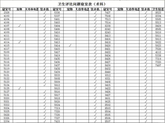 根据我院共青团“一学一做”教育实践活动相关安排。5月17日,开展第一期“安全文明卫生月”主题实践活动。其中,卫生评比活动根据我院宿舍管理规定对宿舍违规和卫生较差两类情况进行专项统计,现公示如下: