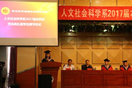 2017年6月19日上午10时,人文社会科学系2017届本科生毕业典礼暨学位授予仪式在武汉体育学院体育科技学院行政楼五楼报告厅隆重举行。武汉体育学院体育科技学院党委常务副书记赵健、学院副院长龙斌、教务处长王郓、学工处长朱尚峰、人文社会科学系主任张欣、经管教研室主任赵欢、思政教研室代表李中祥、全体辅导员和2017届全体毕业生参加本次典礼,典礼由人文社会科学系书记裴耀宇主持。