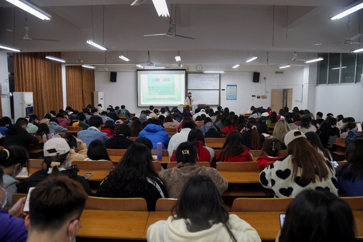 大学时代是发展的黄金时代,心理健康与大学生的成长、成才关系重大。为了全面贯彻党的教育方针、推进素质教育,加强和改进学生心理健康,提高学生心理调节能力,培养良好心理品质,促进学生心理健康成长,11月28日晚18:00,人文社会科学系2019级本科二部全体同学在教学楼B301教室举行了一场“心接触·心起点”心理健康教育主题班会,会议由辅导员申晨老师主持。