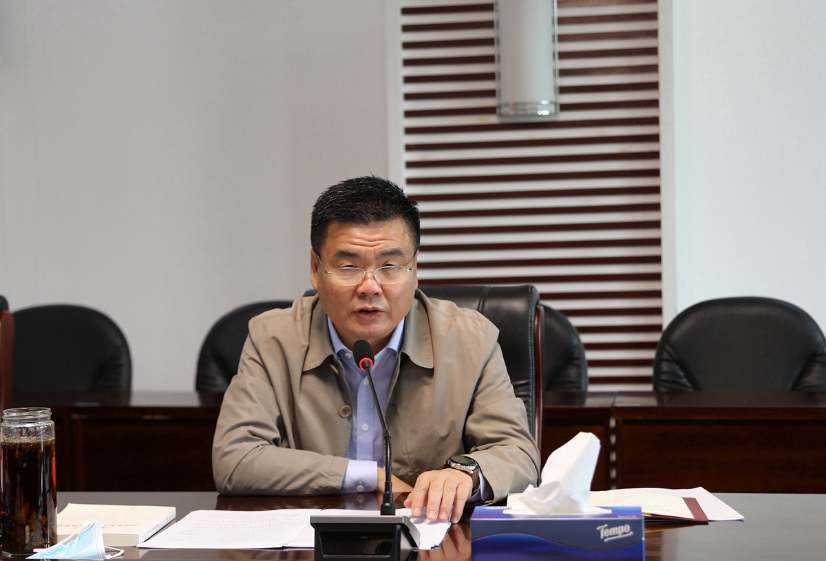 2022年5月11日上午,党委书记张飙在行政楼二楼会议室主持党委理论学习中心组(扩大)2022年第六次集中学习。学院党委委员、中层副职及以上干部参加集中学习。
