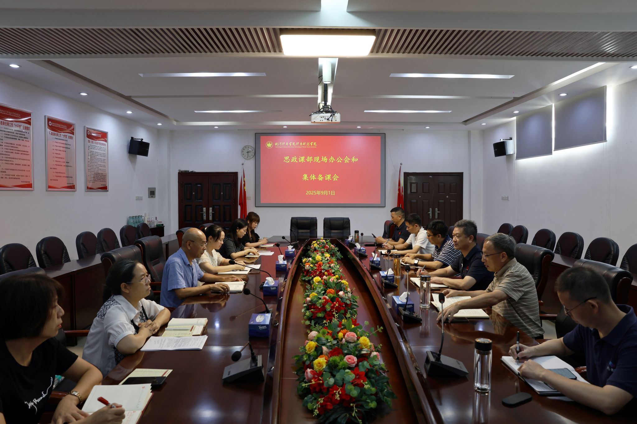 新闻网讯(通讯员李中祥)为进一步贯彻落实习近平总书记关于思政课建设的重要指示,不断深化思政课教学改革创新,切实提高思政课教师的集体备课水平,推动我院思政课建设内涵式发展,91日开学第一天,党委书记朱磊参加思政课部2025年秋季新学期集体备课会并作指导。院长王松、党委班子成员、教务处负责人参会。会议由常务副书记简德平主持。
