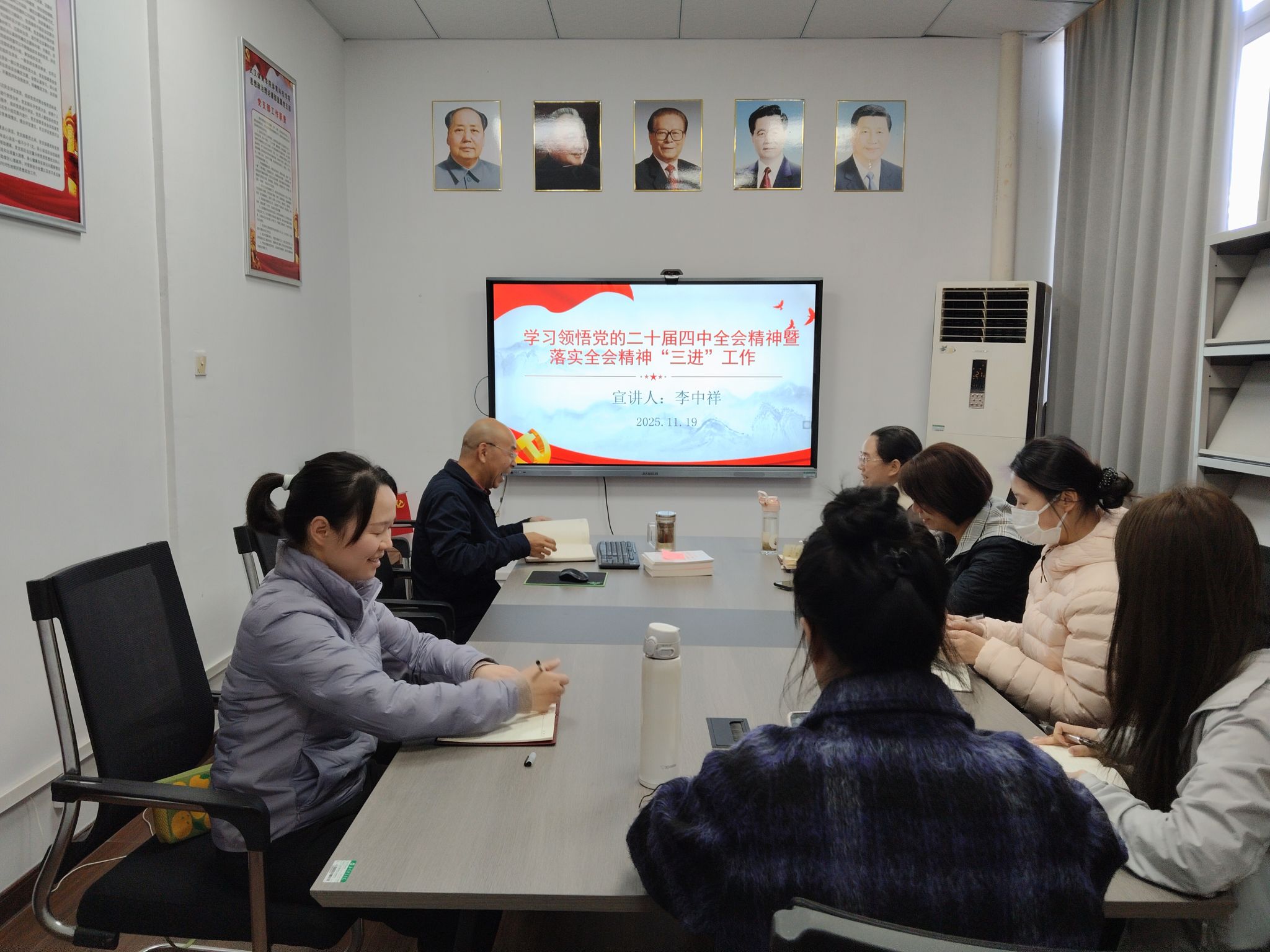 李中祥首先向老师们讲解了全会精神的主要内容,包括《建议》的三大板块、“十五五”时期我国发展环境的总体判断等十项内容。讲解结束后与老师们讨论如何将全会精神落实到“进教材、进课堂、进头脑”的工作中,老师们分别结合自身教授的课程,对此展开详细阐述。