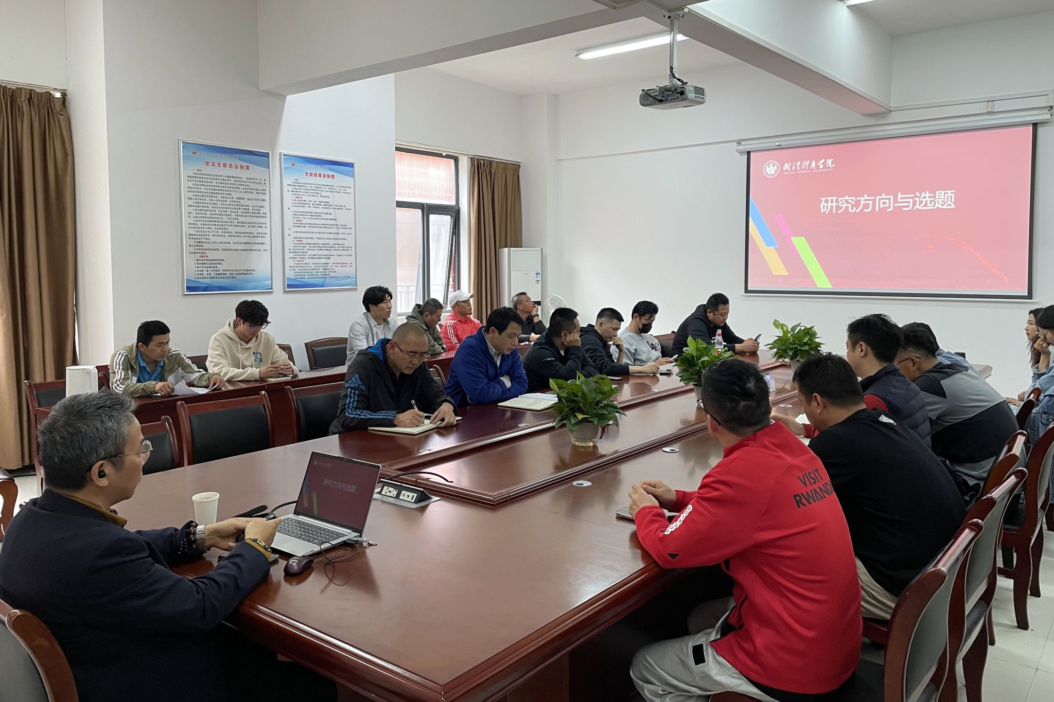 新闻网讯(通讯员李丹)为进一步提升我系教师论文选题、写作和指导本科生顺利完成毕业论文的能力,4月10日下午,体育教育训练系特邀知名体育理论专家、武汉体育学院三级教授欧阳柳青为全体教师作题为《研究方向与选题》学术讲座。体育教育训练系党总支书记、主任朱雄主持讲座。