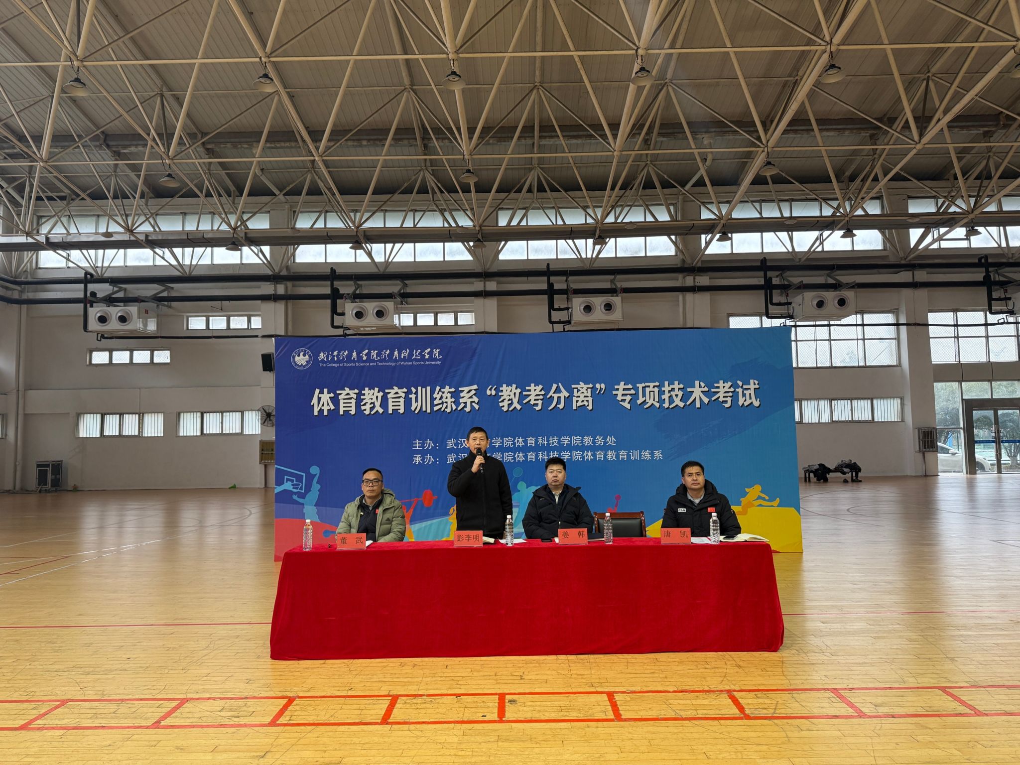 彭李明宣布“教考分离”专项技术考试开幕,随后各教研室专项技术考试有序开展,考场内气氛严肃而热烈,展现出体育学子扎实的专业素养和昂扬的精神风貌。