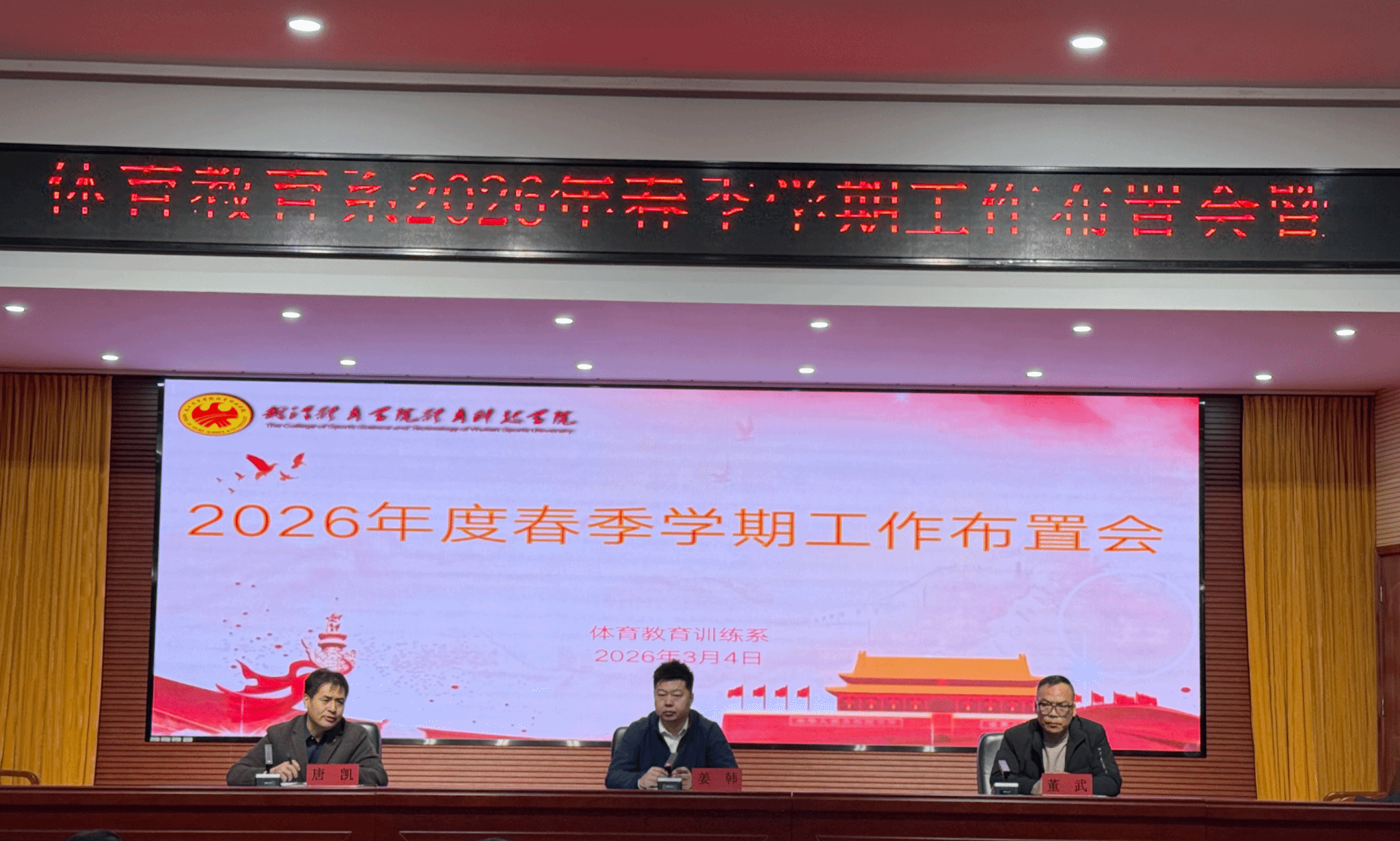 新闻网讯(通讯员 蔺沁)3月4日上午,体育教育训练系2026年春季学期工作布置会暨2025年度系内优秀表彰大会在行政楼五楼报告厅举行。会议总结回顾过去一年工作成效,部署新学期重点任务,并对年度先进集体和个人进行表彰。全系教职工参会,系主任姜韩主持会议。
