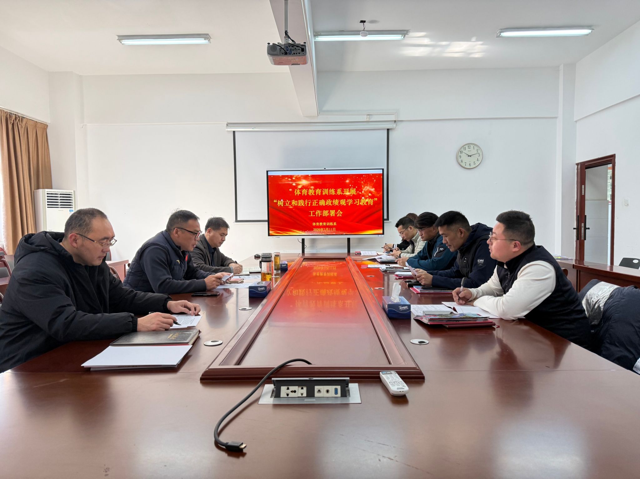 新闻网讯(通讯员 赵鹏)3月11日上午,体育教育训练系在系会议室召开树立和践行正确政绩观学习教育动员部署会。院系领导班子成员、党总支委员、各党支部书记参会,党总支副书记董武主持会议。