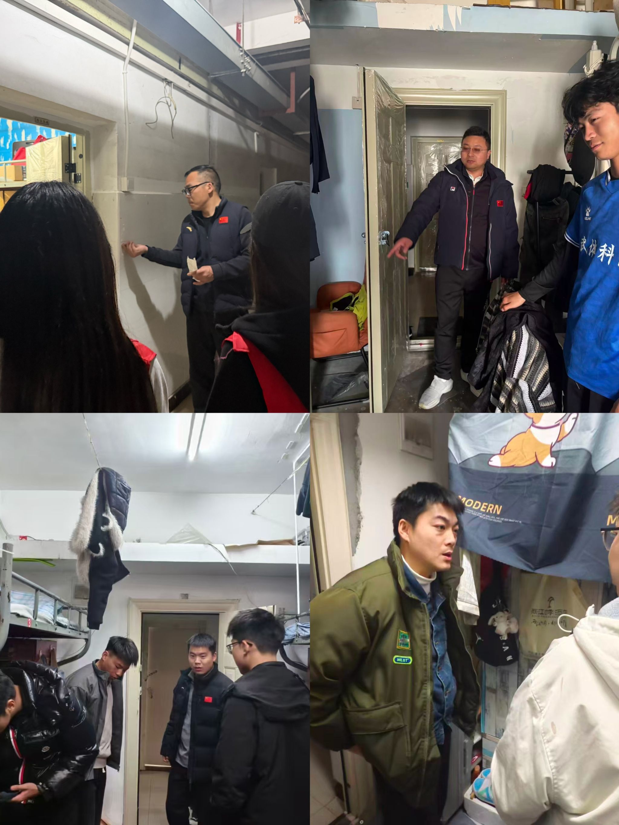 检查过程中,董武与同学们亲切交流,详细了解住宿生活需求,着重强调:“寝室安全关乎每位同学的切身利益,必须树牢‘安全第一’理念。”他特别指出,要严格杜绝违规电器使用、私拉乱接电线等危险行为,共同维护安全有序的居住环境。各辅导员对寝室消防器材有效期、用电线路规范、物品摆放安全等进行专业检查,针对发现的插座超负荷使用、阳台杂物堆积等问题,现场提出整改意见并监督立即整改。