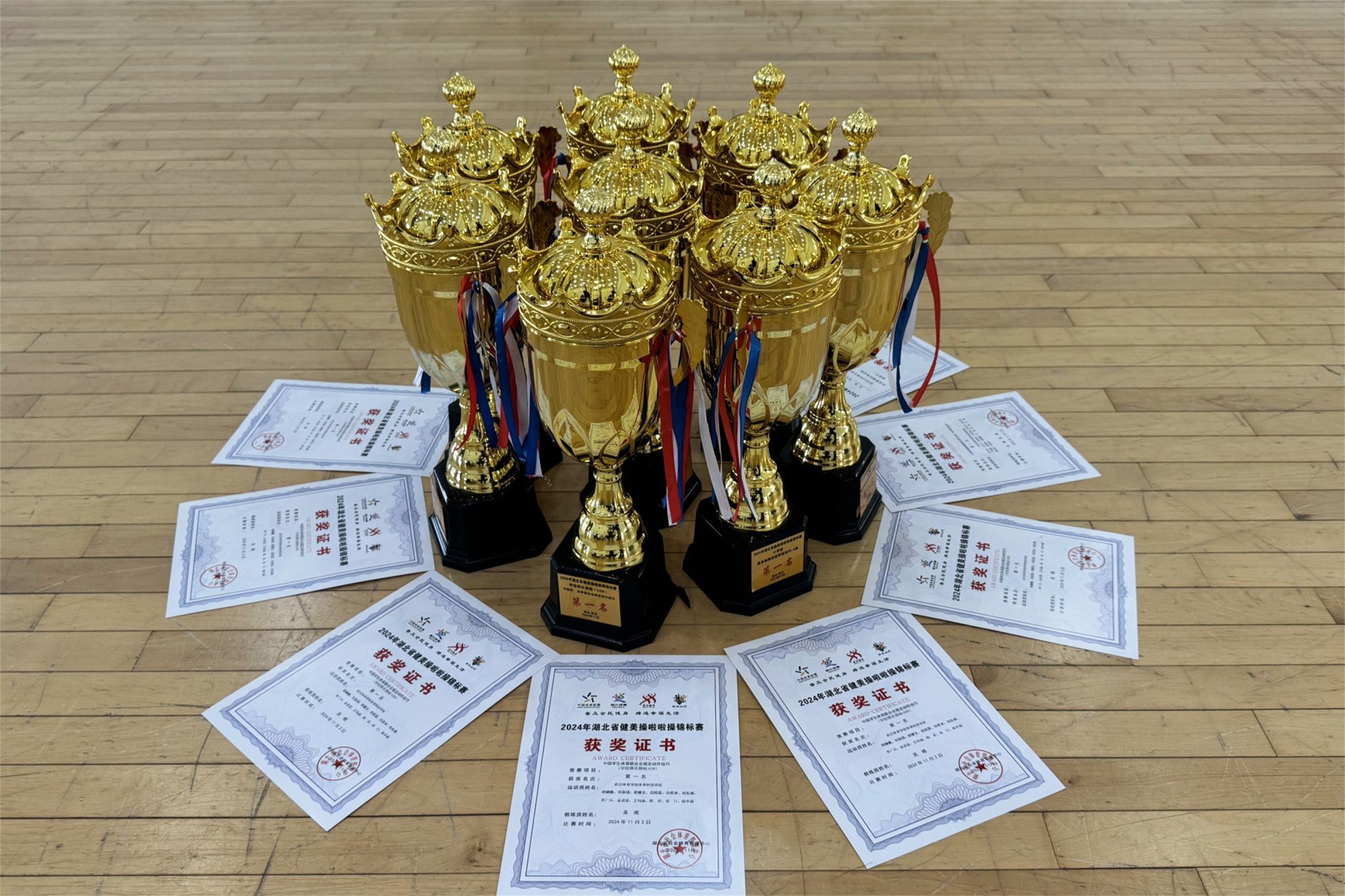 新闻网讯(通讯员吴唯)2024年湖北省健美操啦啦操锦标赛于11月1日至3日在武汉圆满落幕,科院学子在此次赛事中大放异彩。我院艺术与传媒系艺健教研室教师吴唯、易文婷、张丽莉担任教练派出的3支队伍共计65人在8个项目的激烈角逐中全部夺冠,以卓越的表现彰显了我校的强大实力和人才培养蓬勃发展的良好态势。