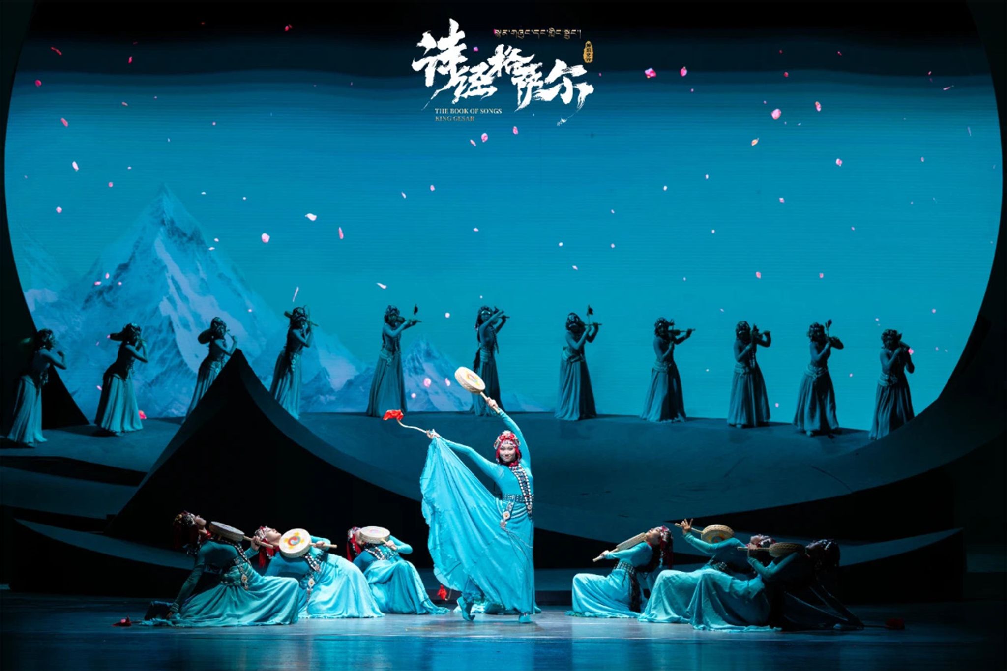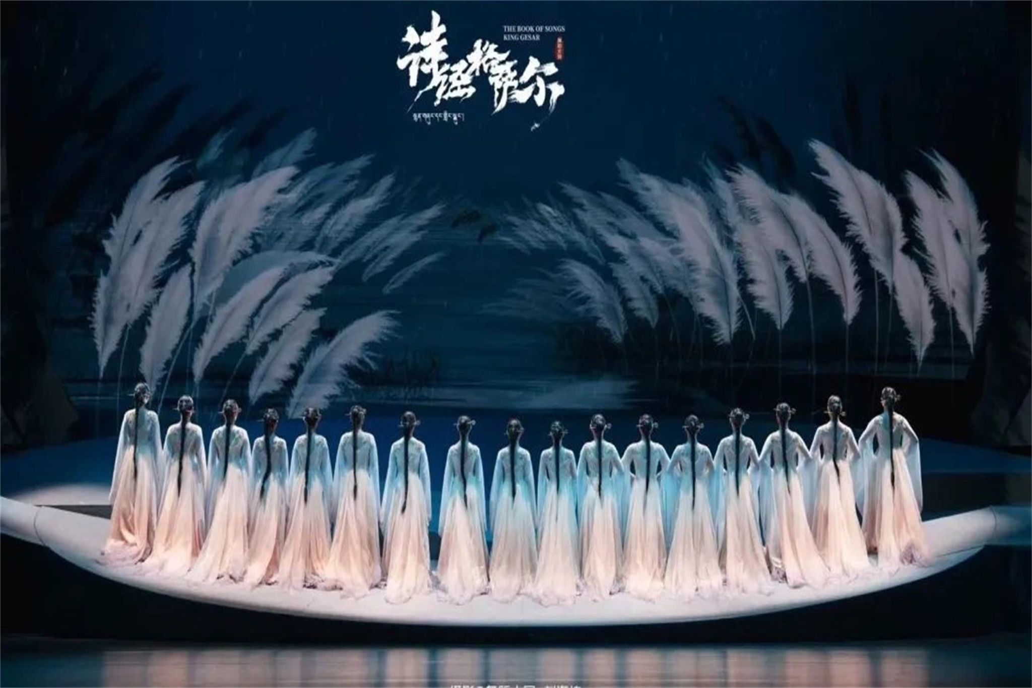 以舞为媒,千年文化的当代对话。《诗经·格萨尔》舞剧创新性地将汉族文学经典《诗经》与藏族英雄史诗《格萨尔》融为一体,通过现代舞蹈语汇构建起跨越时空的文化对话。在剧中,“关关雎鸠”的诗意与格萨尔王的传奇交相辉映,汉族舞蹈的婉约灵动与藏族舞步的豪迈奔放相得益彰,为观众呈现出一幅绚丽多彩的中华文化画卷。