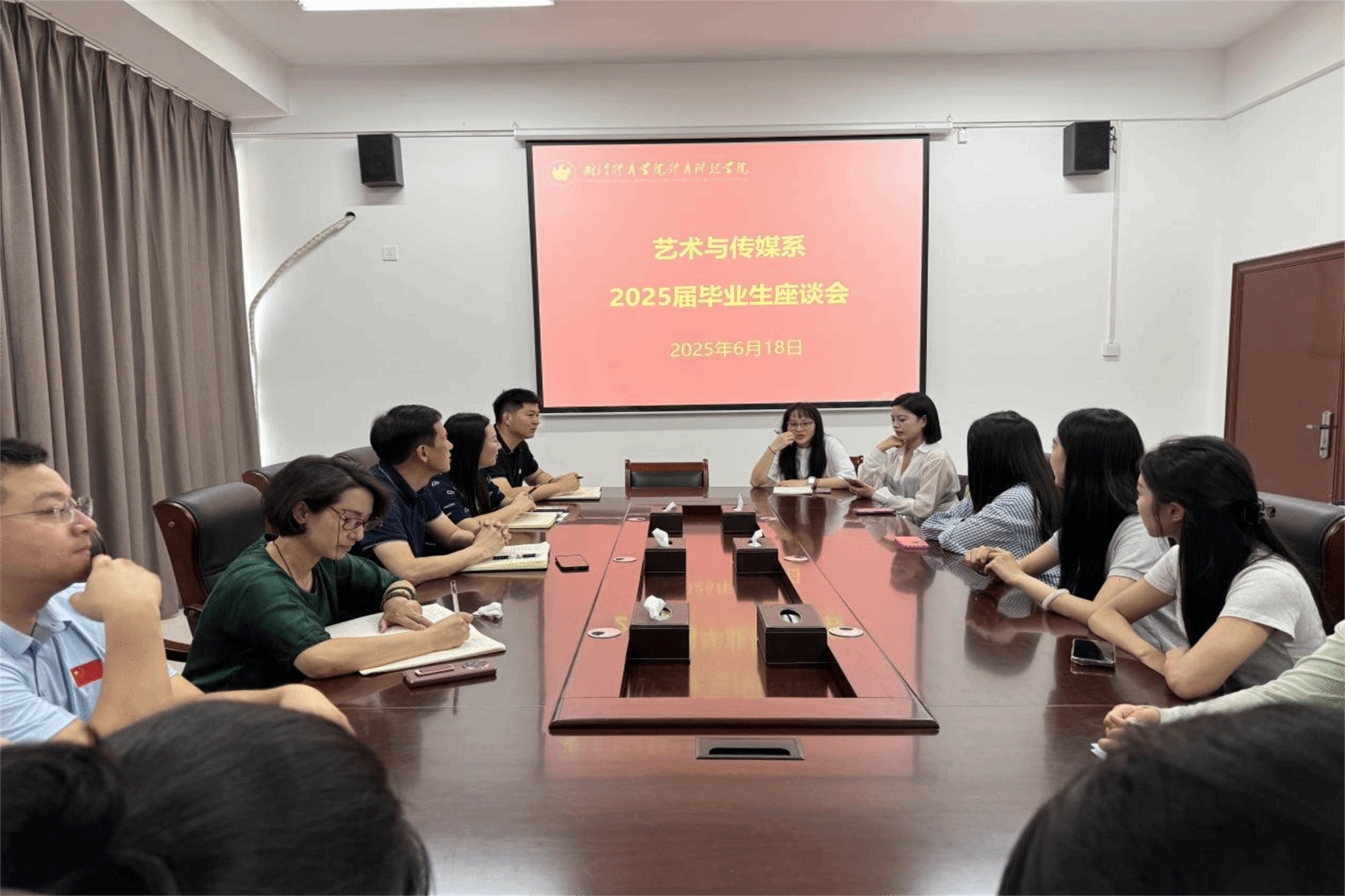 座谈会在温馨融洽的氛围中圆满结束。通过此次座谈会,搭建了师生沟通的桥梁,倾听了毕业生的真实心声,为艺术与传媒系持续提升人才培养质量、优化学科专业建设、推动各项事业高质量发展注入了新的动能。带着师长的殷切嘱托和母校的深情祝福,2025届毕业生即将扬帆启航,奔赴崭新未来。