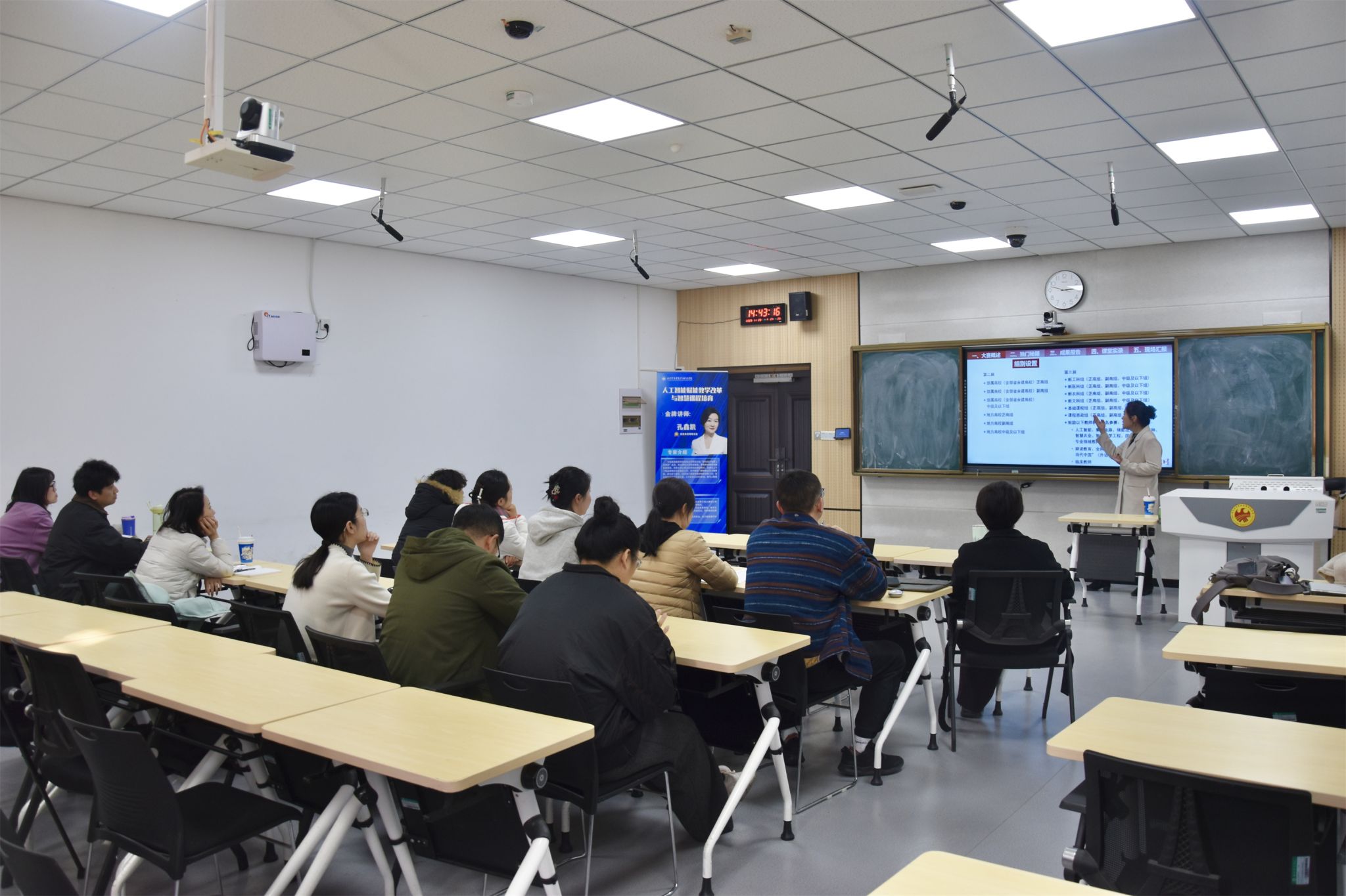 讲座围绕“教学创新大赛”展开,孔总监首先介绍了大赛的核心信息,帮助教师快速把握赛事要点。随后,他重点讲解了参赛材料的准备策略,系统拆解了成果报告、教学大纲、教案设计、课堂实录等四大关键材料,并就现场报告环节进行了深入指导。最后,孔总监结合人工智能技术,分享了AI辅助材料撰写与优化的实用技巧,助力教师高效提升课程建设质量,为备赛提供了清晰、可行的路径指引。