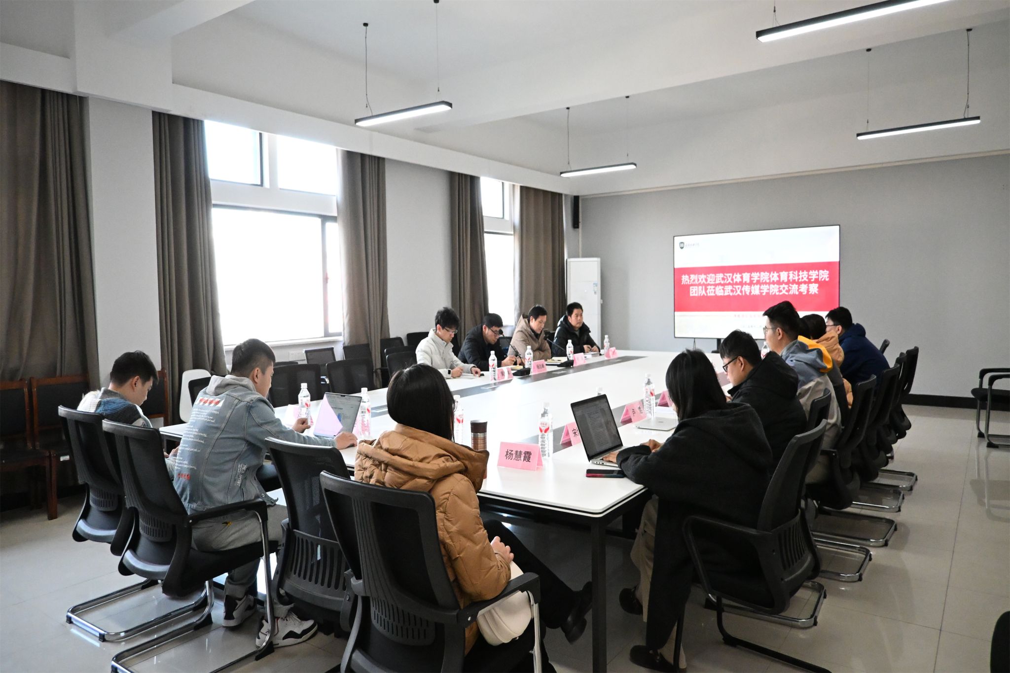 新闻网讯(通讯员潘俊峰)为主动对接新时代传媒行业发展需求,优化我院2026年专业人才培养体系,提升传媒类专业建设水平,2025年12月3日下午,艺术与传媒系党总支书记柯颂带领新闻教研室主任潘俊峰、网络与新媒体教研室主任杨志峰、播音与主持艺术专业负责人黄艺丰一同赴武汉传媒学院新闻传播学院开展专题调研。武汉传媒学院新闻传播学院党总支书记张爱军,院长赵倩接待调研组并举行座谈。