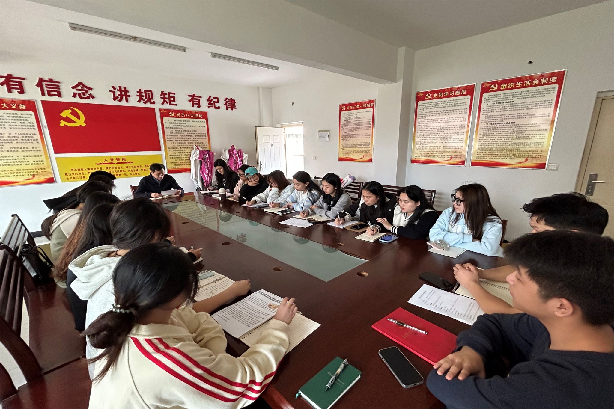 方科同志领学了《习近平总书记在中央全面深化改革委员会第六次会议上的重要讲话精神》;权晨同志领学了《习近平总书记在全国教育大会上发表的重要讲话精神》;沈铭慧同志领学了《习近平总书记对党纪学习教育作出的重要指示精神》。会上,各位同志围绕学习内容进行充分交流。