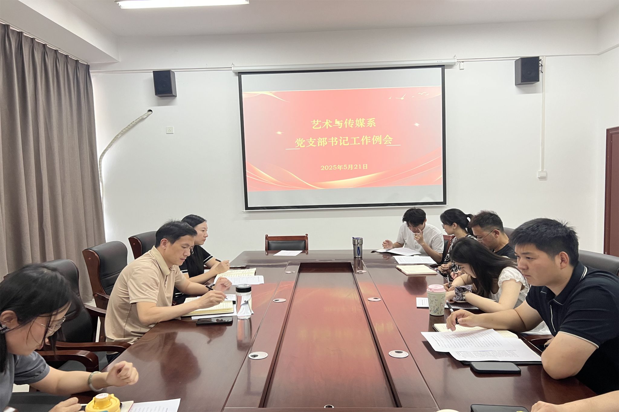 新闻网讯(通讯员曾雄)5月21日,艺术与传媒系党总支书记柯颂主持召开党支部书记工作例会,院系党总支副书记王林蓝、全体党支部书记及辅导员参加此次会议。