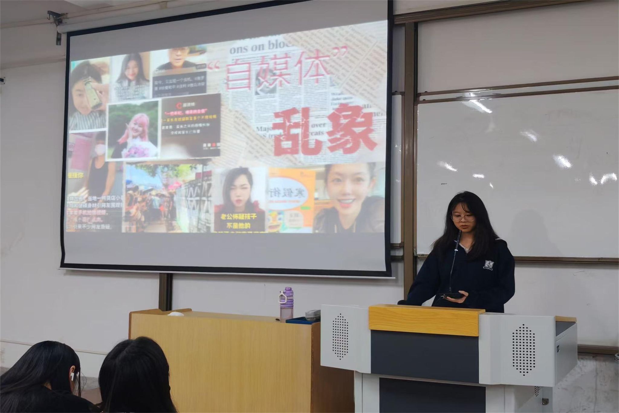 卢晓仪关注“自媒体乱象”议题,结合典型案例,直指虚假传播、流量至上等行业问题,并叩问新闻学子的专业责任与伦理坚守。她的分享不仅剖析现象,更唤起对媒介初心的反思。