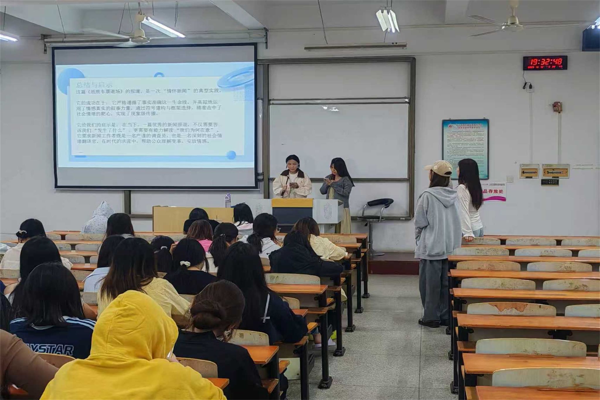 活动尾声,辅导员刘梦婷对本次活动进行了总结。充分肯定分享人的精心准备与同学们的积极参与。她强调,本次主题活动旨在锤炼新闻人的核心素养——热点敏感度、批判思维与专业解读能力。
