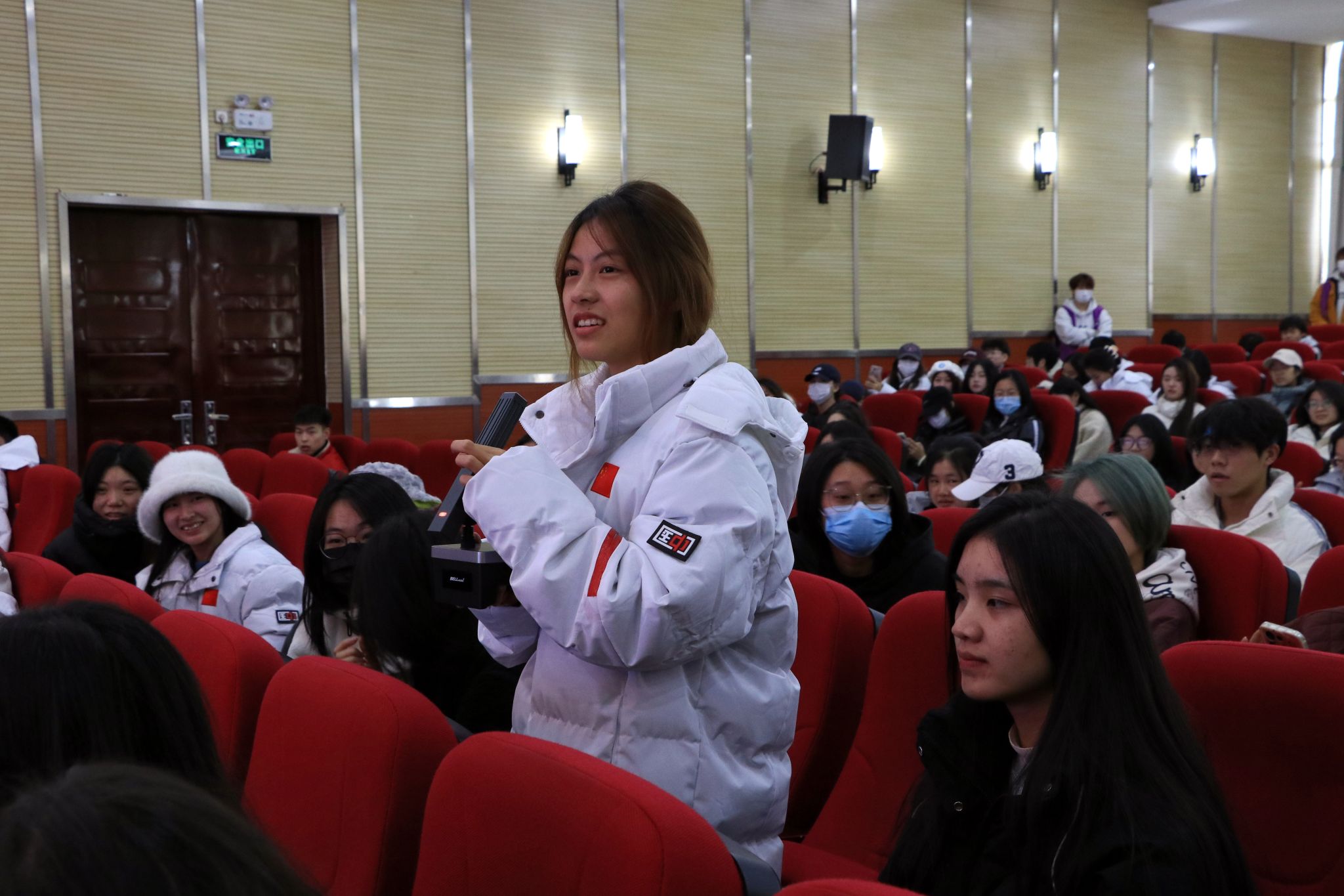 在听音辨艺环节中,同学们通过运动器械的声音辨别运动项目,听音频中主持人的解说词辨别运动项目,以及绕口令大比拼三个部分,采用随机抽选的方式,既为比赛增添了一丝紧张感,同时也能让同学们更好感受体育文化。