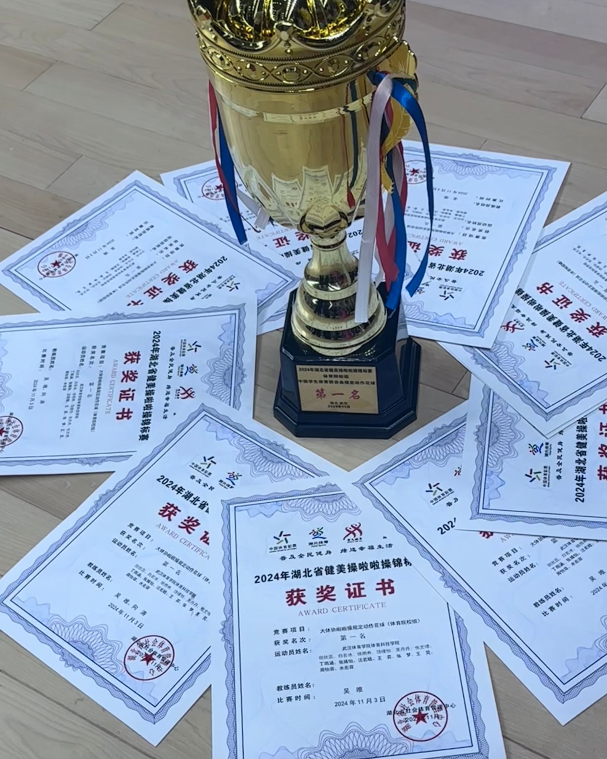 新闻网讯(通讯员吴唯)2024年湖北省健美操啦啦操锦标赛于11月1日至3日在武汉圆满落幕,科院学子在此次赛事中大放异彩。我院艺术与传媒系艺健教研室教师吴唯、易文婷、张丽莉担任教练派出的3支队伍共计65人在8个项目的激烈角逐中全部夺冠,以卓越的表现彰显了我校的强大实力和人才培养蓬勃发展的良好态势。